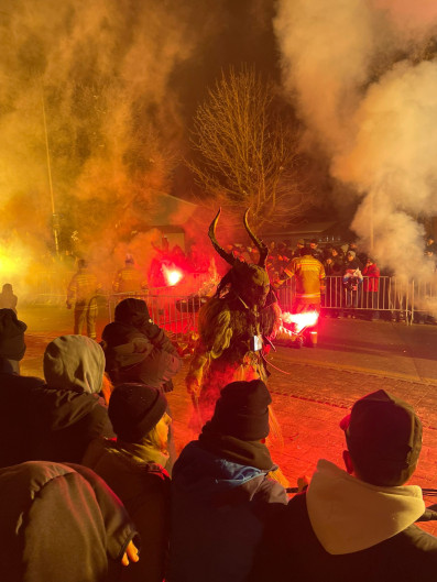 Ve středu večer jsme si nenechali ujít tradiční Krampuslauf – akci plnou světelných efektů, sirných dýmů a divokých Krampusáků. Naštěstí si nikoho z nás neodnesli. Ve čtvrtek jsme prozkoumávali dolní část Saalbachu a v pátek jsme se v mlze projížděli na Schmittenhöhe.
