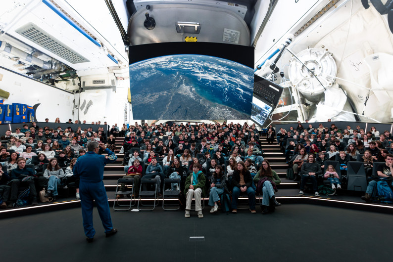 Na své cestě do Čech se Stephen Bowen zastavil i v pražském planetáriu, kde měli možnost poslechnout si jeho přednášku žáci základních a středních škol, které jsou partnerskými školami Vzdělávací kanceláře ESA, ESERO Česká republika.